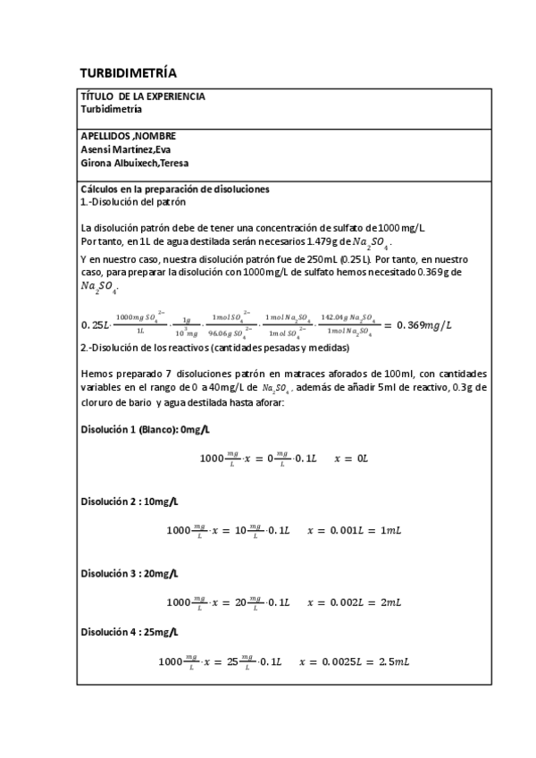 He publicado nuevos practicas de 2º Experimentación en análisis químico: Memoria-turbidimetria.pdf