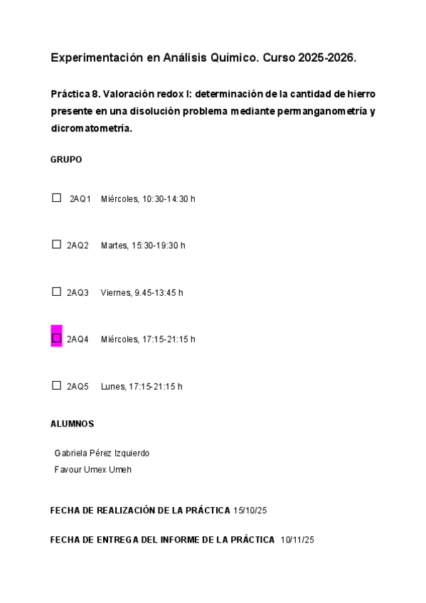 He publicado nuevos practicas de 2º Experimentación en análisis químico: Entrega-1-INFOR.pdf