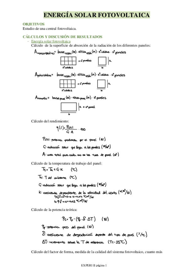Experimentación en Ingeniería de la Energía II