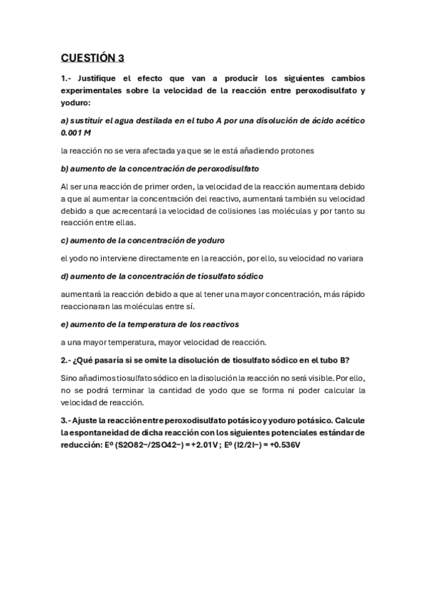 Experimentación química cuestiones