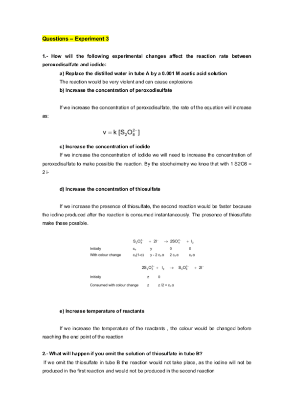 Reports and questions Chemical experimentation