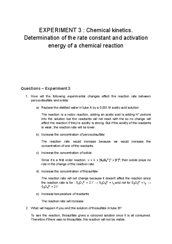 Reports and questions Chemical experimentation