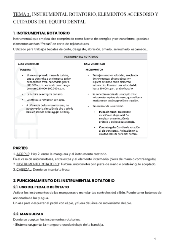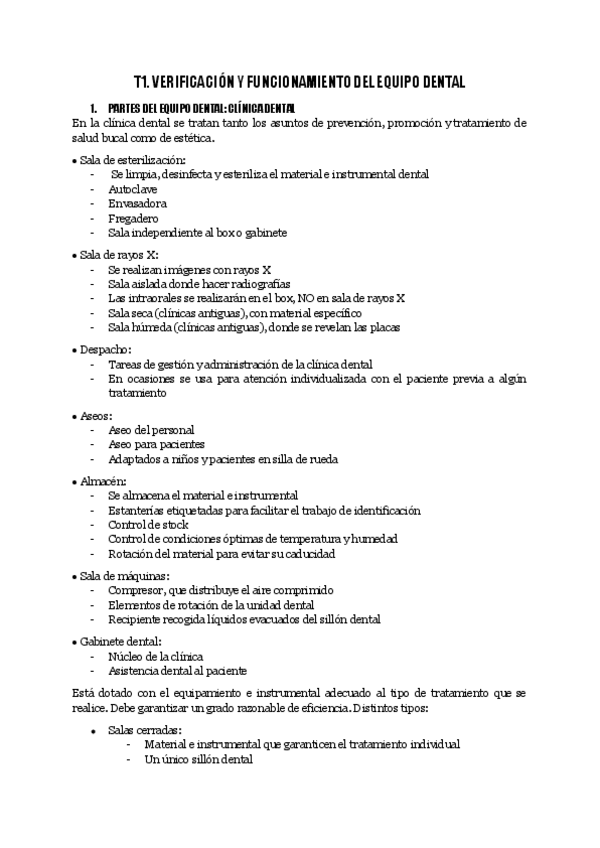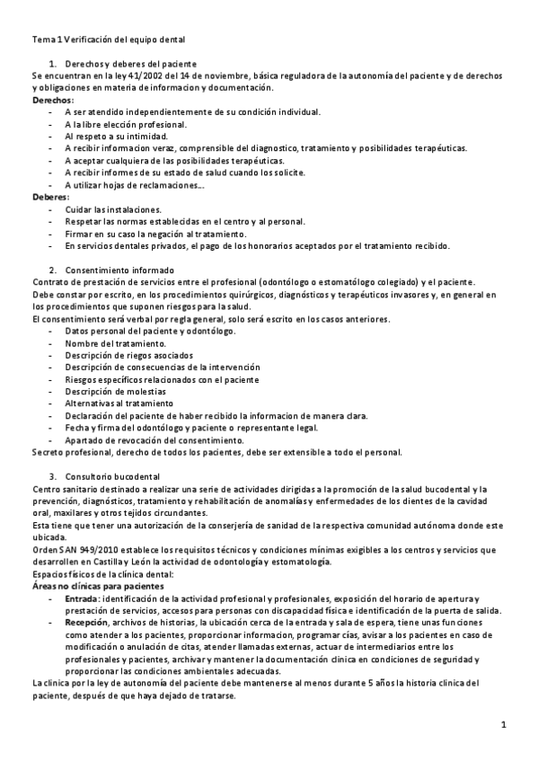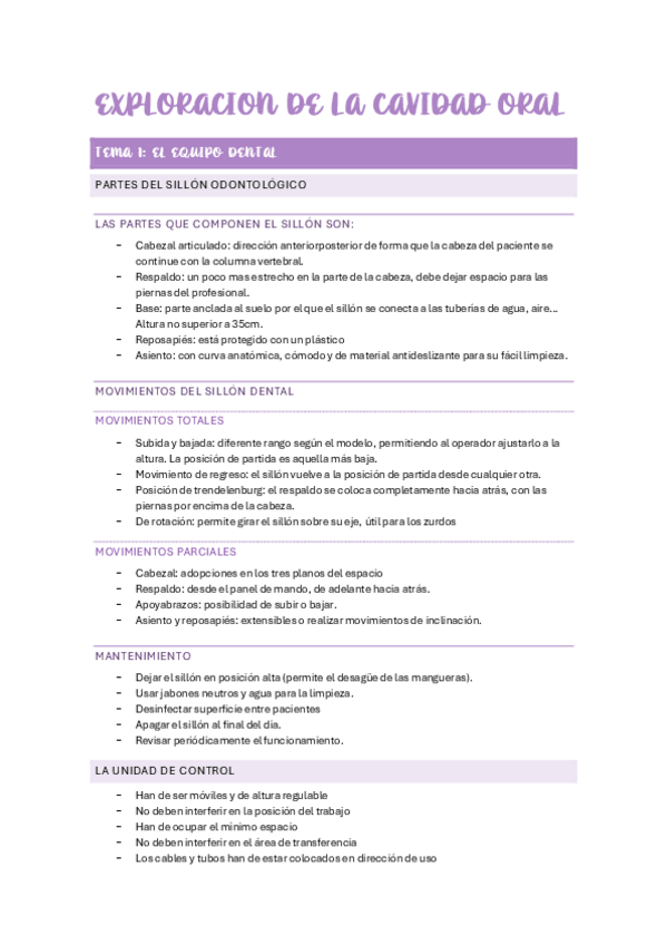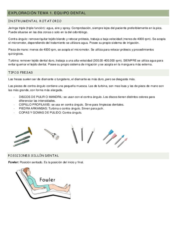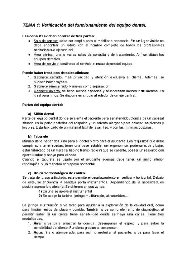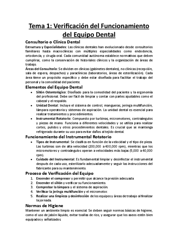 Subo apuntes del Tema 1 de EXPLORACIÓN DE LA CVIDAD ORAL de 1ro de Higiene Bucodental: VERIFICACIÓN DEL EQUIPO DENTAL.