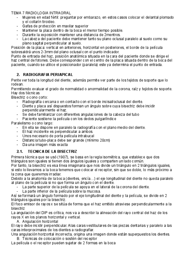Subo apuntes del tema de APLICACIÓN DE TÉCNICAS PARA LA OBTENCIÓN DE IMÁGENES DE RADIOGRAFÍA DENTAL de EXPLORACIÓN DE LA CAVIDAD ORAL.