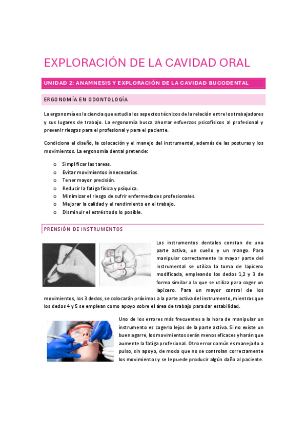Subo apuntes del Tema 3 y 4 de EXPLORACIÓN DE LA CVIDAD ORAL de 1ro de Higiene Bucodental: PREPARACIÓN DEL INSTRUMENTAL Y MATERIAL + REALIZACIÓN DE ANAMNESIS Y EXPLORACIÓN DE LA CAVIDAD ORAL