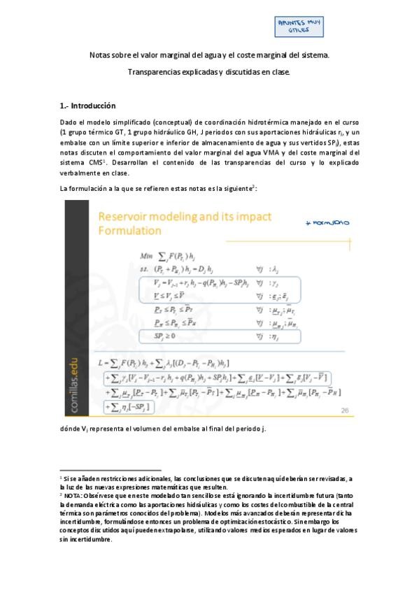 He publicado nuevos apuntes de 1º Explotación de los Sistemas de Energía Eléctrica : Notas-sobre-el-valor-marginal-del-agua-y-el-coste-marginal-del-sistema.pdf