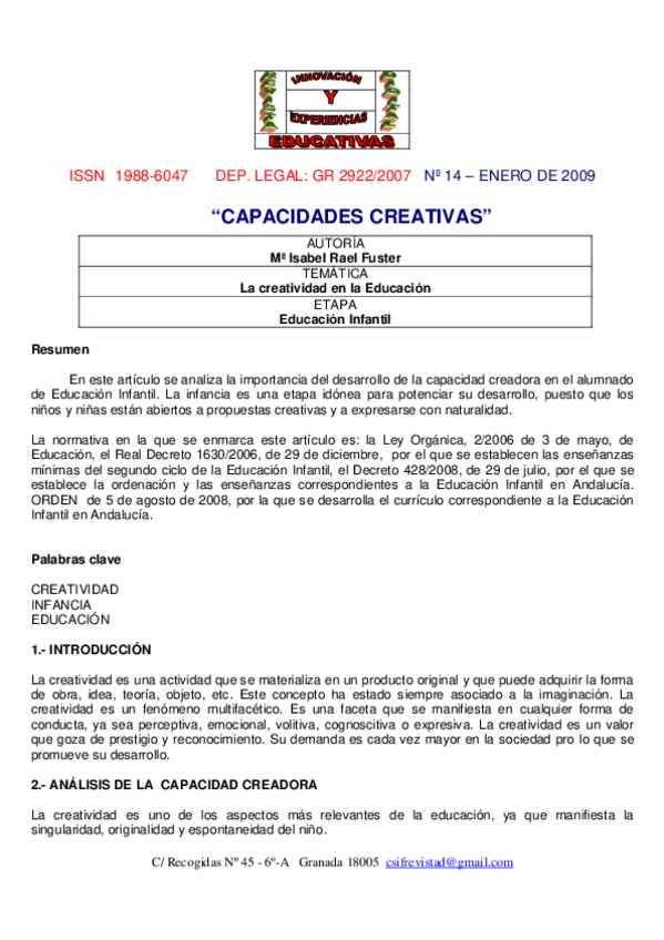 He publicado nuevos apuntes de 2º Expresión Corporal en la Infancia: Creatividad-articulo.pdf