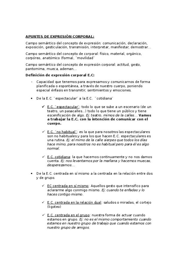 Apuntes de expresión corporal con todos los documentos de clase + apuntes recogidos en clase