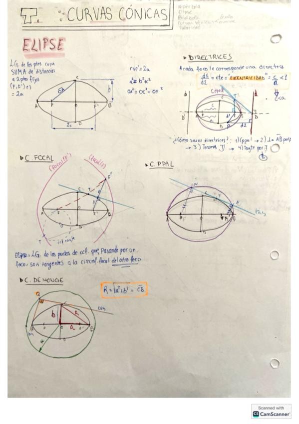 Apuntes cónicas polaridad poncelet expresión grafica. Grado ingenieria civil y territorial upm. Elipse parábola hipérbola óvalo ovoide.