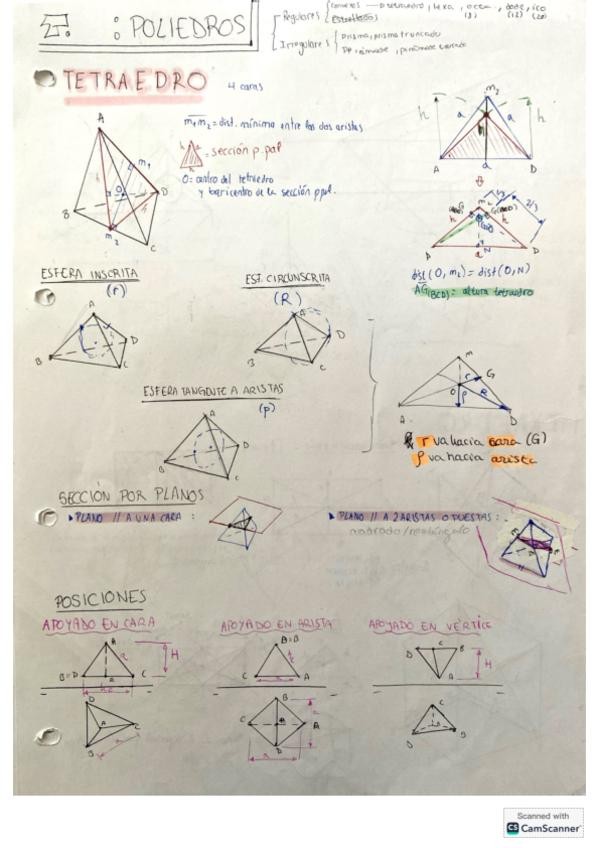 Apuntes expresión gráfica POLIEDROS primer parcial. Hexaedro tetraedro octaedro dodecaedro icosaedro.