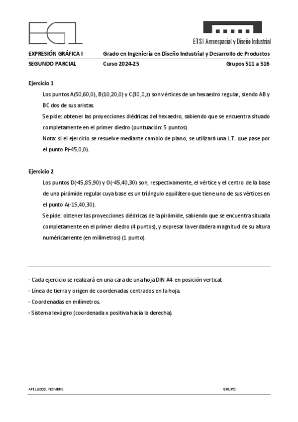 He publicado nuevos examenes de 1º Expresión Gráfica I: 2oPARCIAL2025.pdf