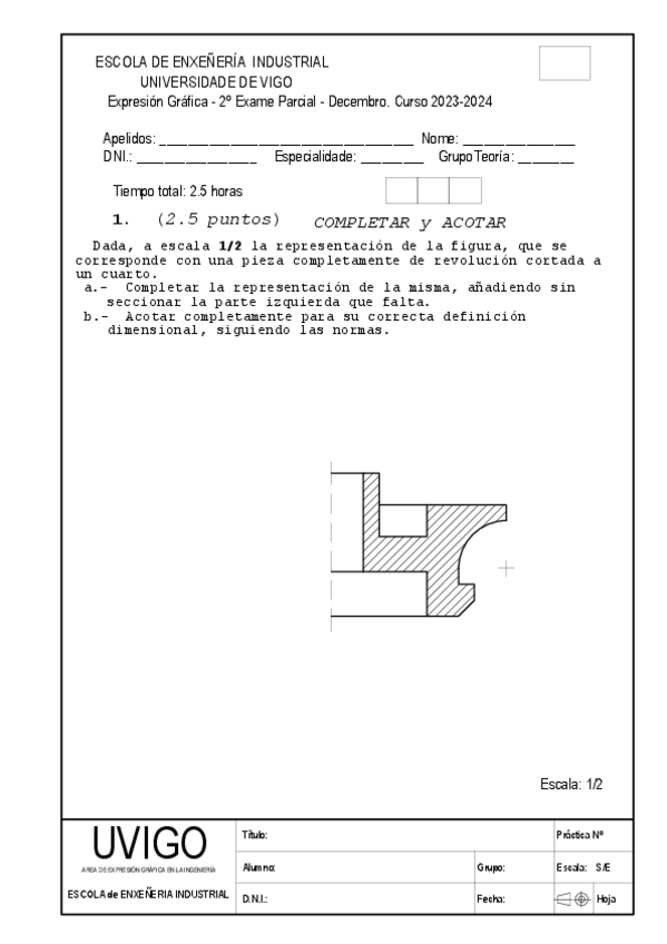 He publicado nuevos examenes de 1º Expresión Gráfica: AutoCad