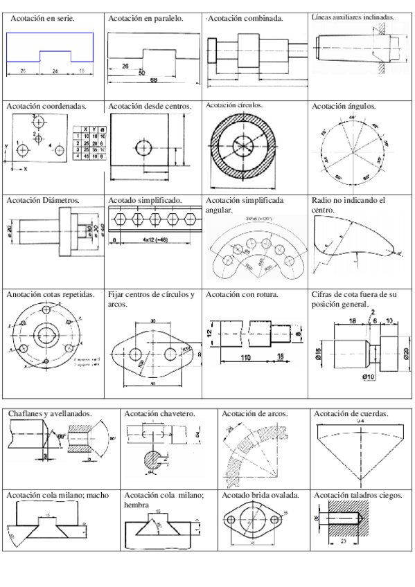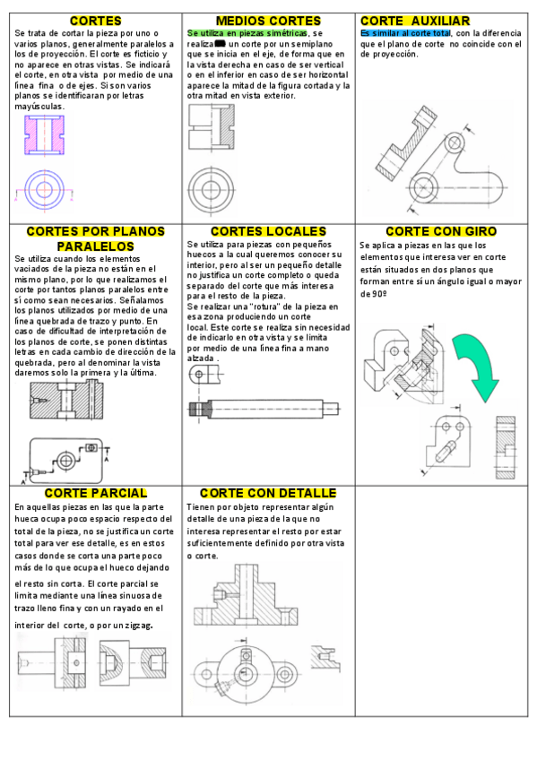 Resúmenes de: Conjunto-cortes-roscas-vistas-acotación