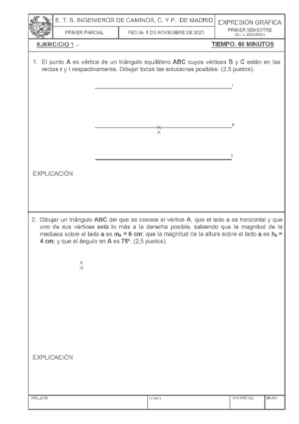 He publicado nuevos examenes de 1º Expresión Gráfica: 00Ex-P1-23-24-EnunciadosMoodle.pdf