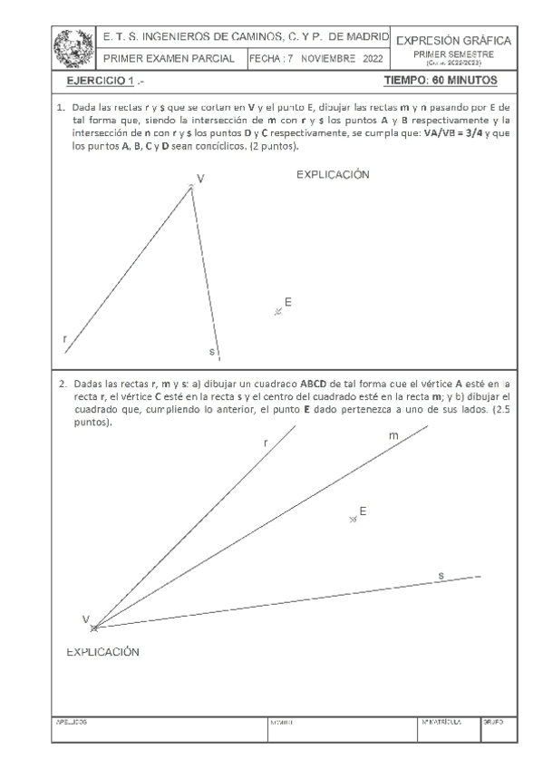 He publicado nuevos examenes de 1º Expresión Gráfica: Ex-p1-22-23EnunciadosMoodle.pdf