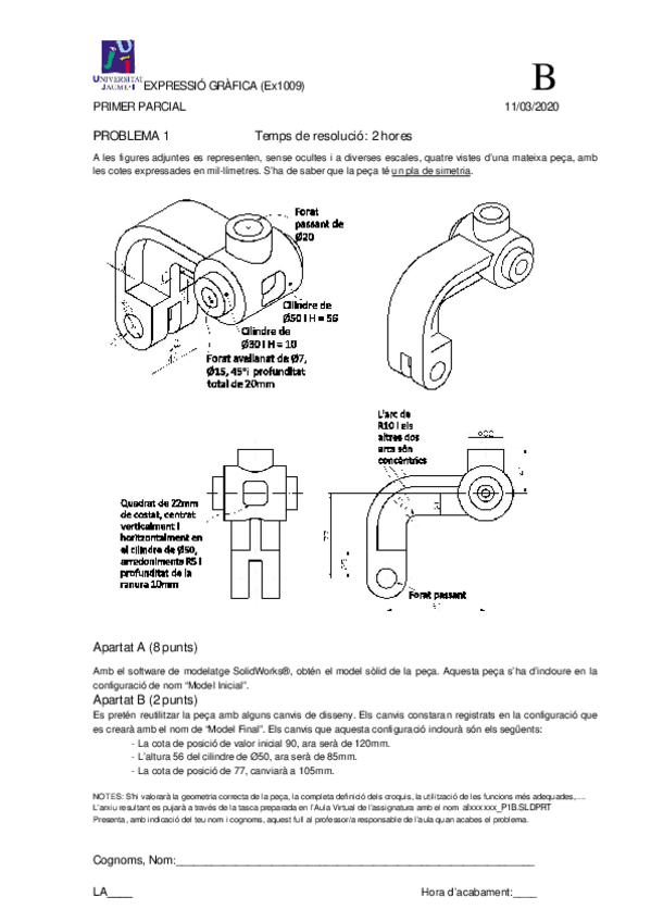 He publicado nuevos examenes de 1º Expresión Gráfica: Solucion piezas examen 19-20