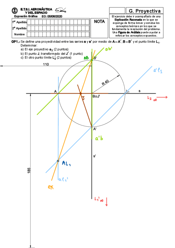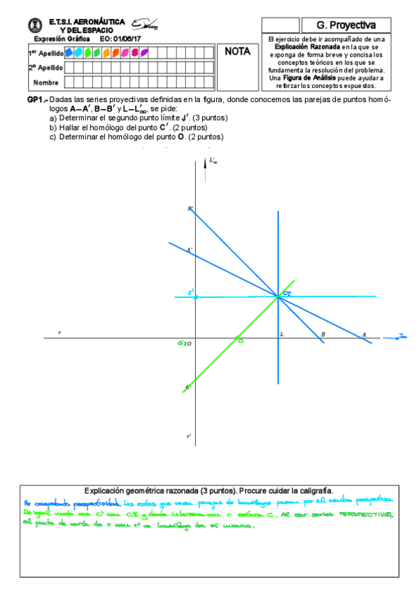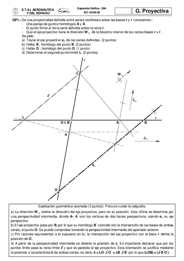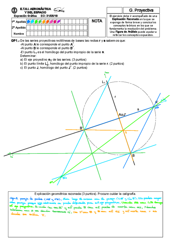 Exámenes resueltos paso a paso (proyectiva y métrica)