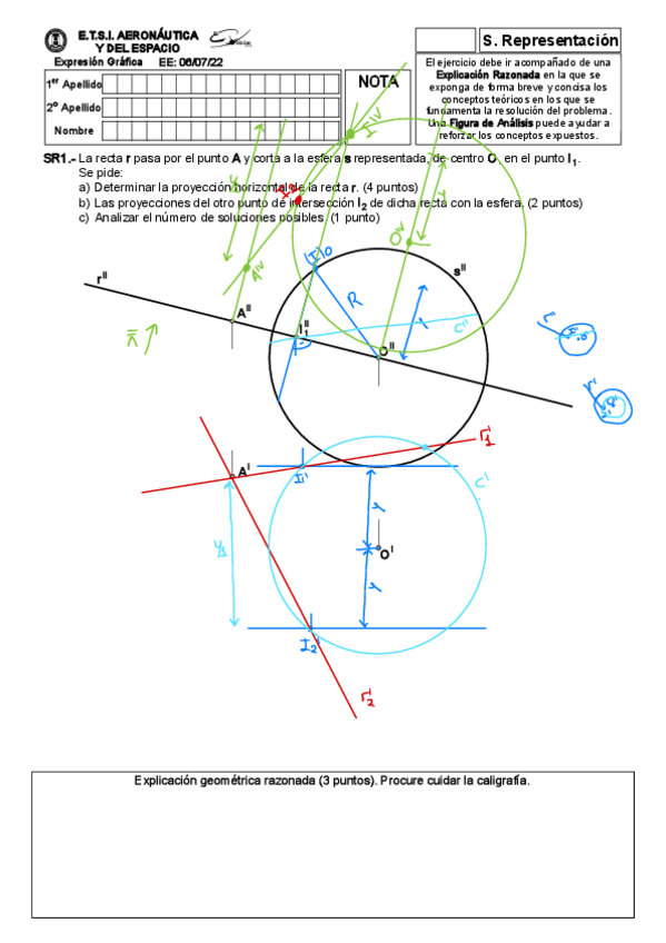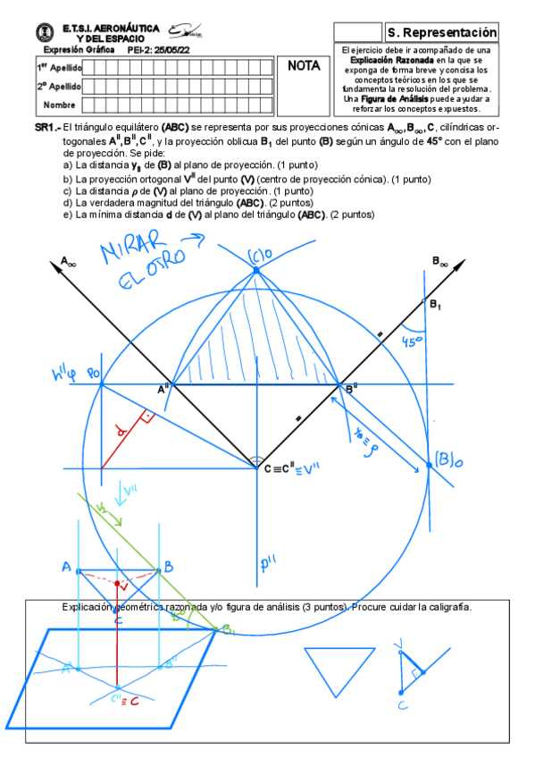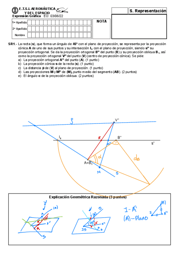 He publicado nuevos examenes de 1º Expresión Gráfica: Exámenes resueltos paso a paso (proyectiva y métrica)