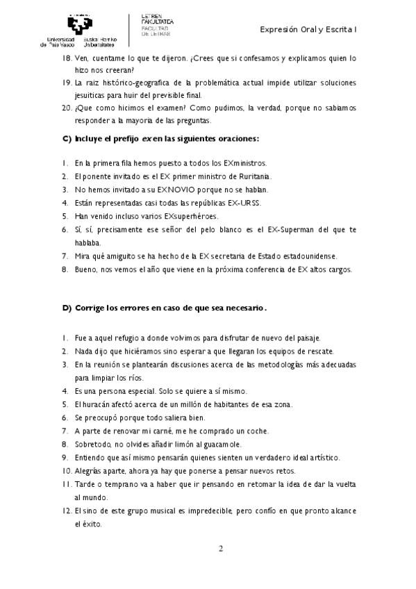 He publicado nuevos ejercicios de 1º Expresión Oral y Escrita I en Lengua A: Ejercicios corregidos