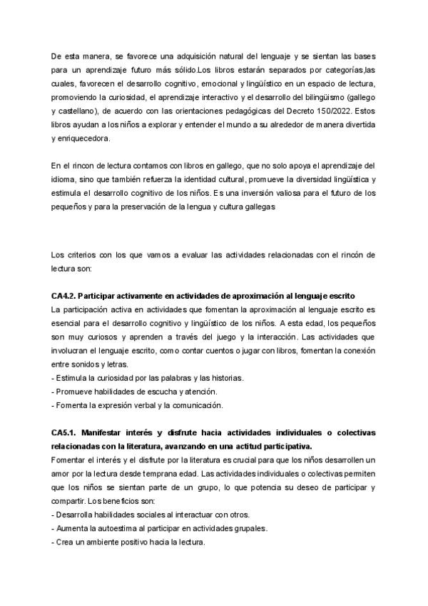 Trabajo de realización de un rinconcito de lectura con libros y fundamentación