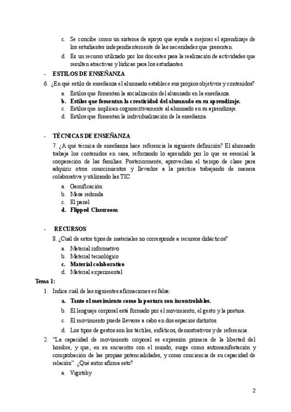 He publicado nuevos examenes de 3º Expresividad y Creatividad Corporal en la Infancia: Banco-de-preguntas.pdf