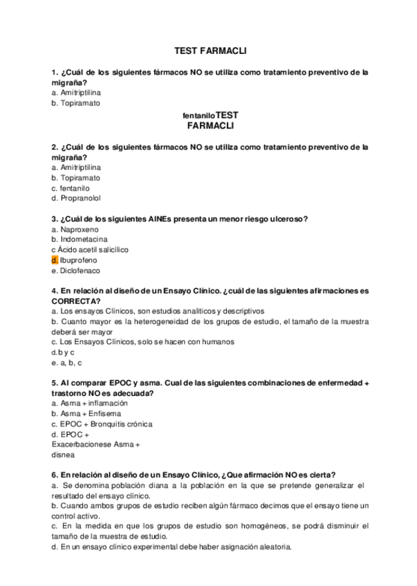 Test Farmacia clínica y Farmacoterapia