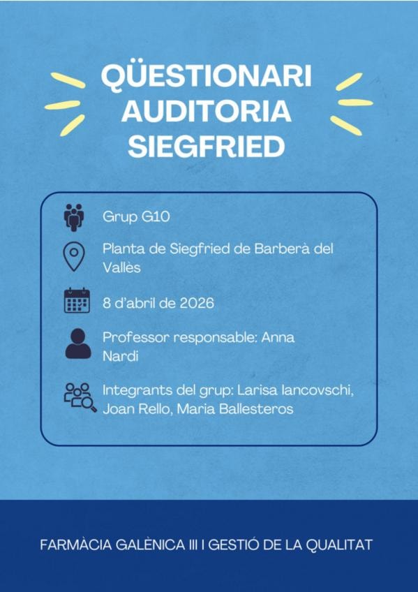 He publicado nuevos apuntes de 4º Farmacia Galénica III y Gestión de la Calidad: Questionari-auditoria-siegfried.pdf