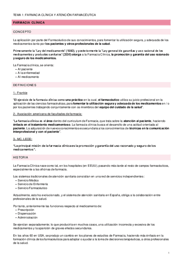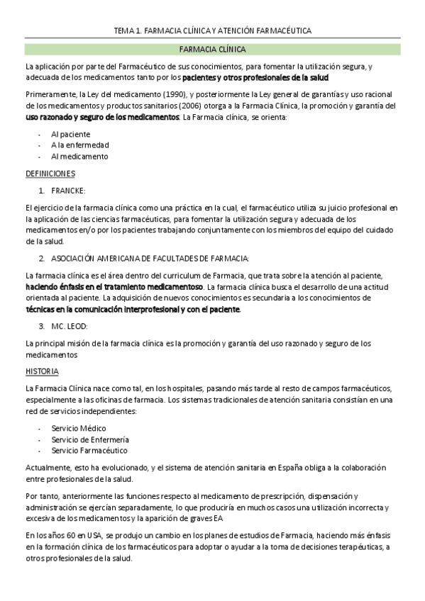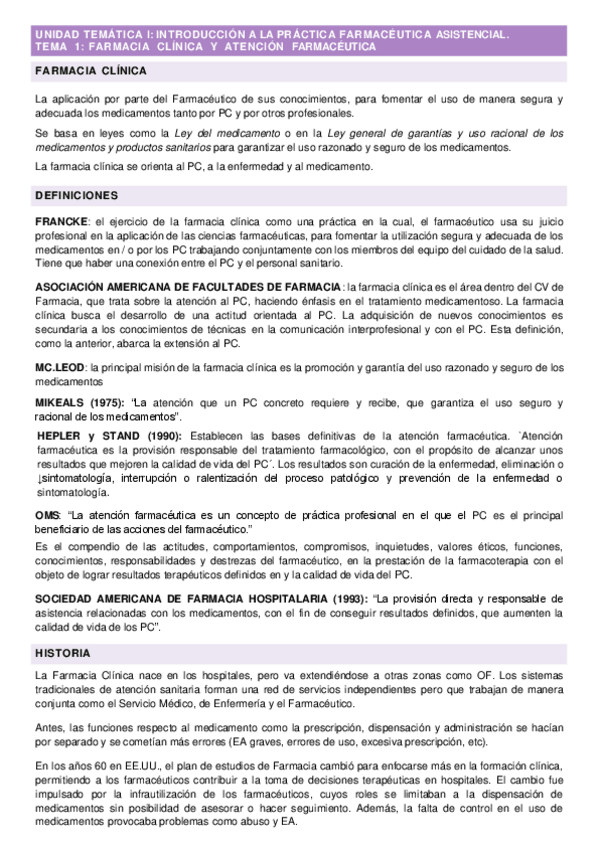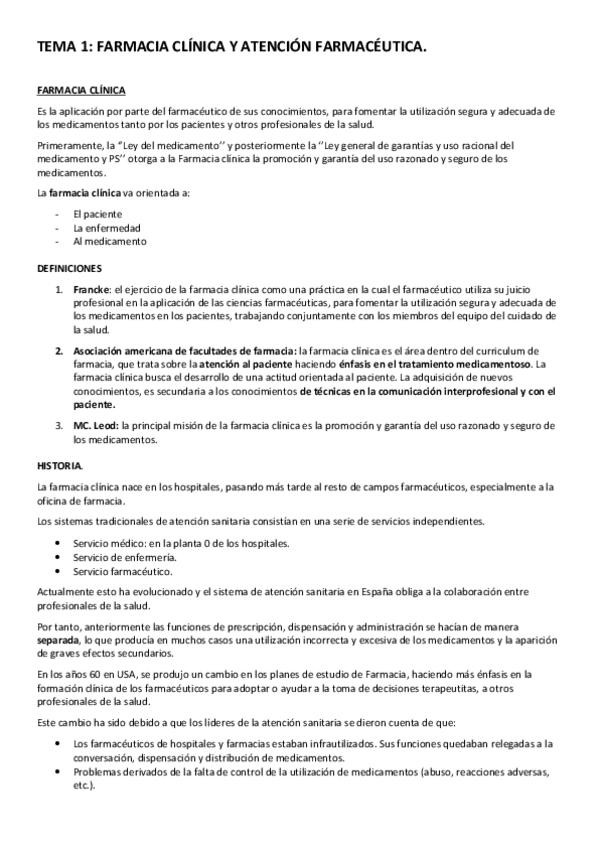 He publicado nuevos apuntes de 4º Farmacia Practica Integrada: Tema 1. Concepto de farmacia clínica y atención farmacéutica.pdf