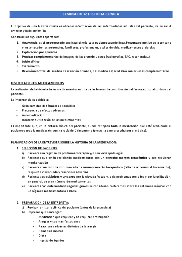 He publicado nuevos apuntes de 4º Farmacia Practica Integrada: Seminario 3. Historia farmacoterapéutica del paciente.pdf