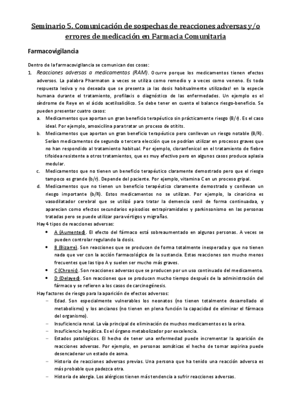 He publicado nuevos apuntes de 4º Farmacia Practica Integrada: Seminario 5. Comunicación de sospechas de reacciones adversas y errores de medicación en Farmacia Comunitaria.pdf