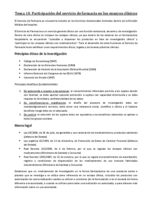 He publicado nuevos apuntes de 4º Farmacia Practica Integrada: Tema 10. Participación del servicio de farmacia en los ensayos clínicos.pdf