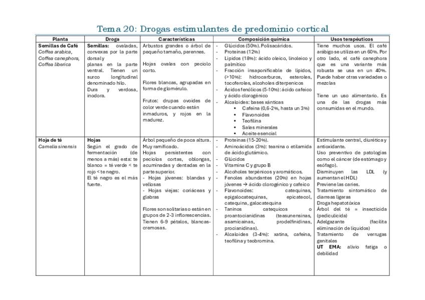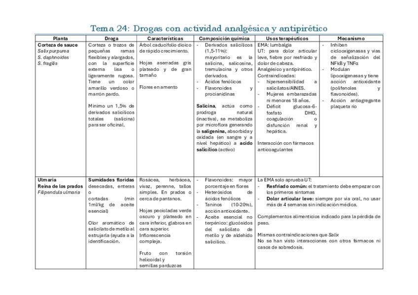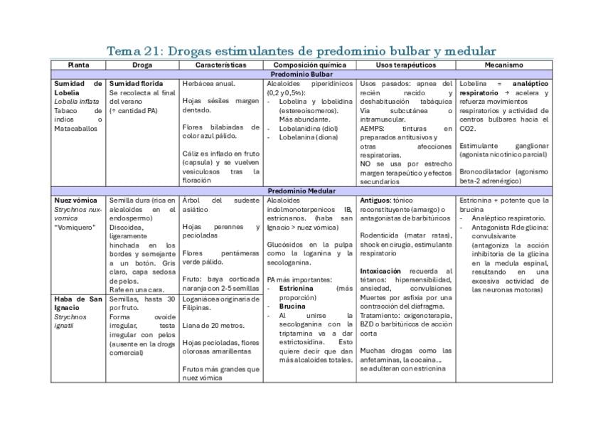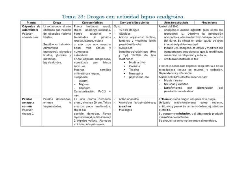 Iré subiendo cada día. Son resúmenes esquematizados con toda la materia de lo que hay que saber para el segundo parcial. Está dividida toda la materia en 7 categorías: Nombre científico y familia Parte que es la droga Particularidades individuales de la
