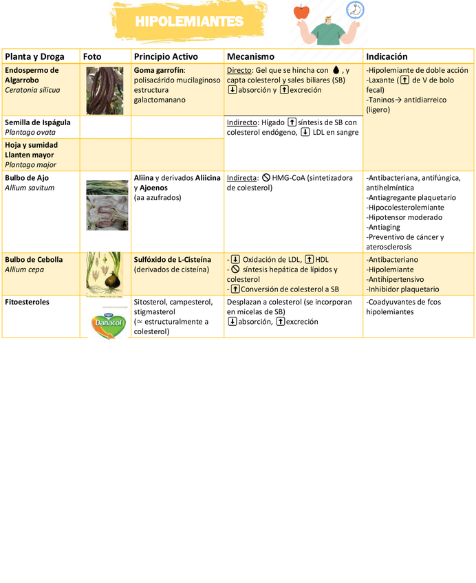 Tablas de todo el apartado de Fitoterapia