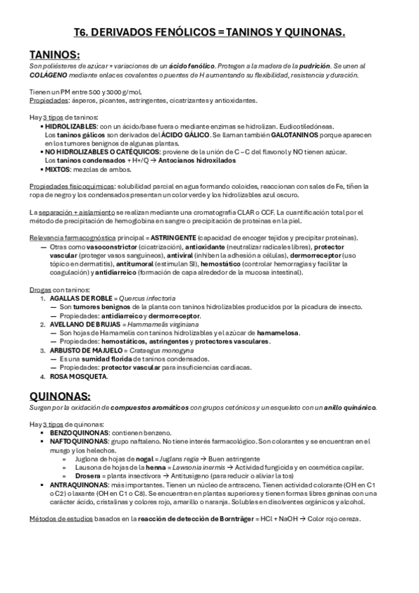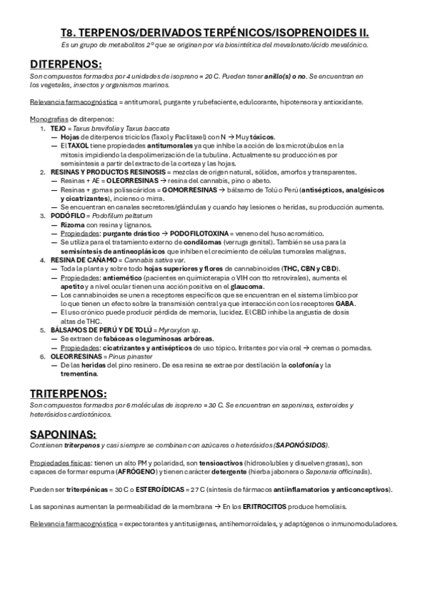 ESQUEMAS/RESUMENES 2º PARCIAL FARMACOGNOSIA