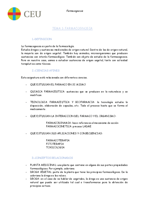 He publicado nuevos apuntes de 4º Farmacognosia: Farmacognosia