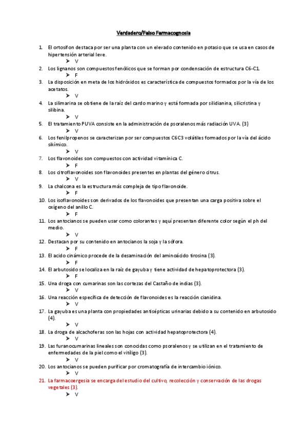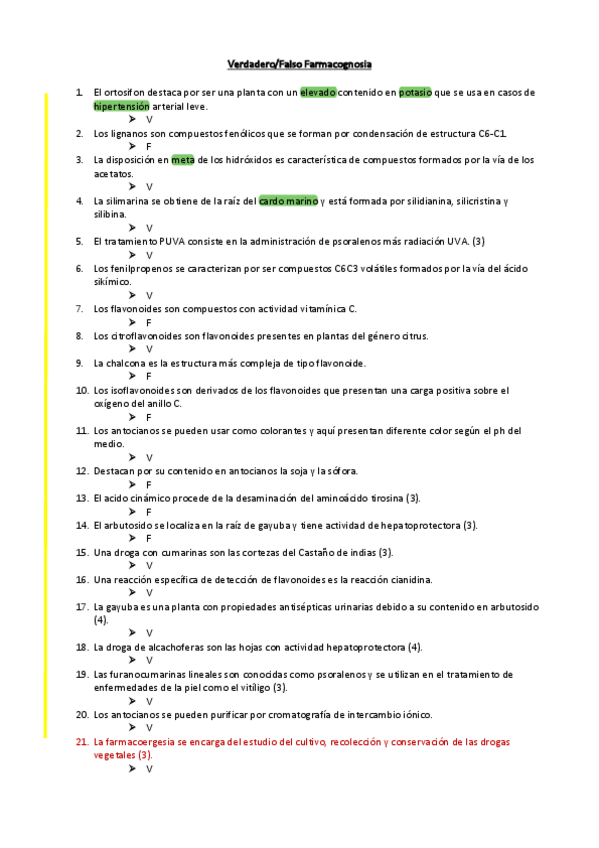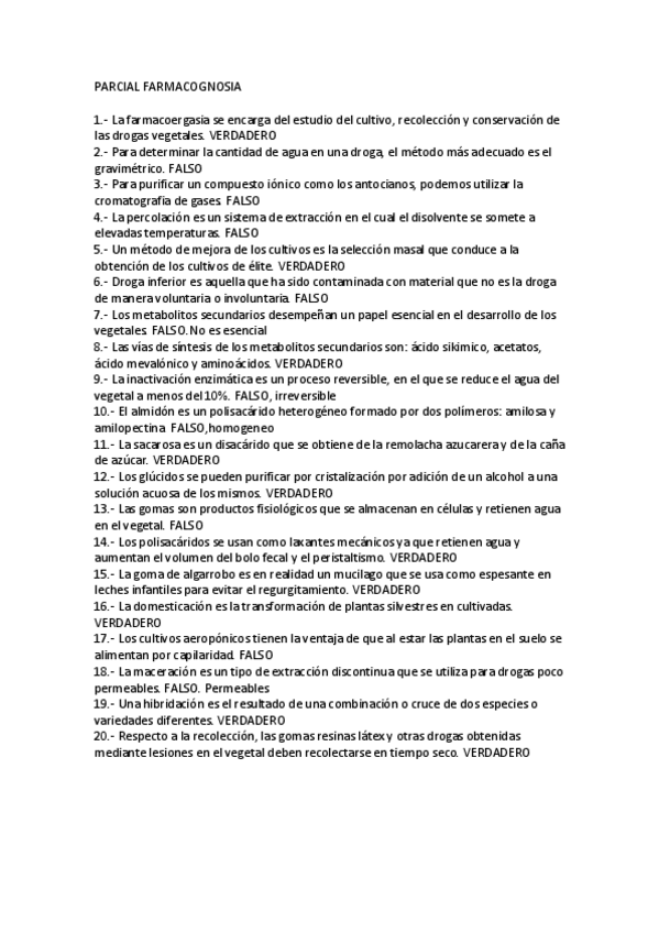 He publicado nuevos examenes de 4º Farmacognosia: Verdadero-Falso-ALCACHOFERA.pdf