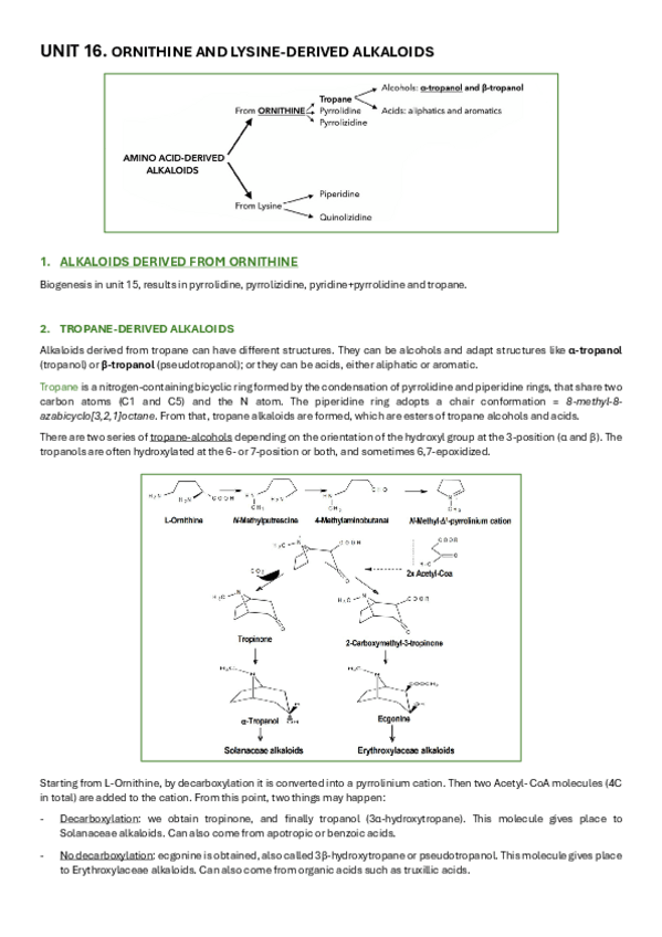 He publicado nuevos apuntes de 3º Farmacognosia: UNIT-16-ORNITHINE-AND-LYSINE-DERIVED-ALKALOIDS.pdf