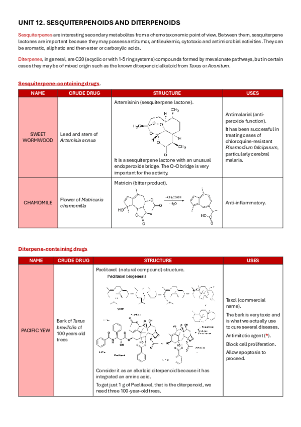 He publicado nuevos apuntes de 3º Farmacognosia: UNIT-12-SESQUITERPENOIDS-AND-DITERPENOIDS.pdf