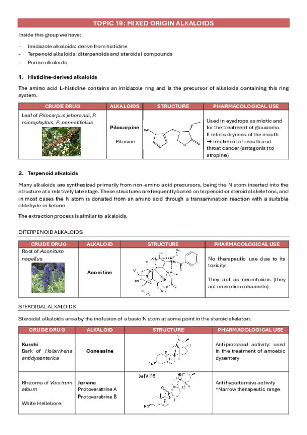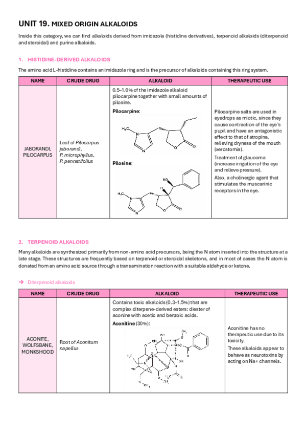 He publicado nuevos apuntes de 3º Farmacognosia: UNIT-19-MIXED-ORIGIN-ALKALOIDS.pdf