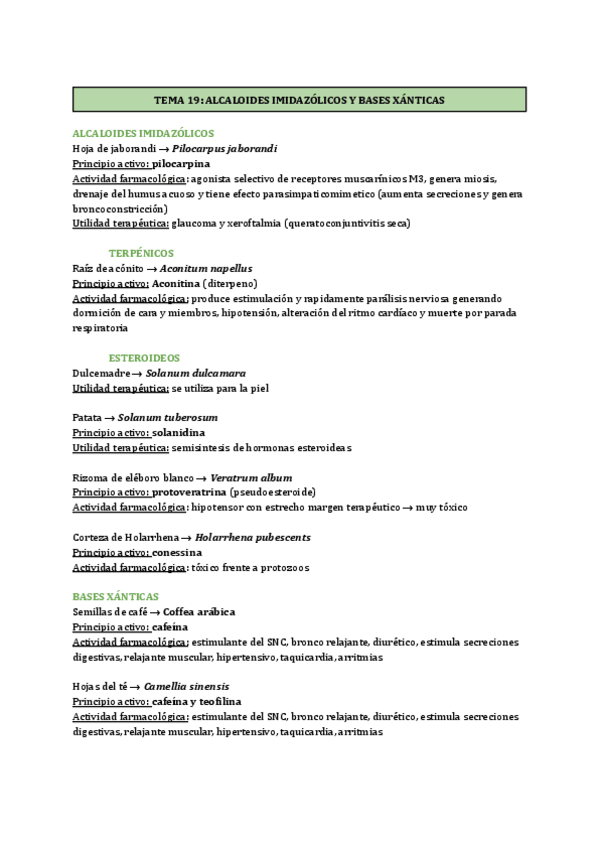 He publicado nuevos apuntes de 3º Farmacognosia: TEMA-19-ALCALOIDES-IMIDAZOLICOS-Y-BASES-XANTICAS.pdf