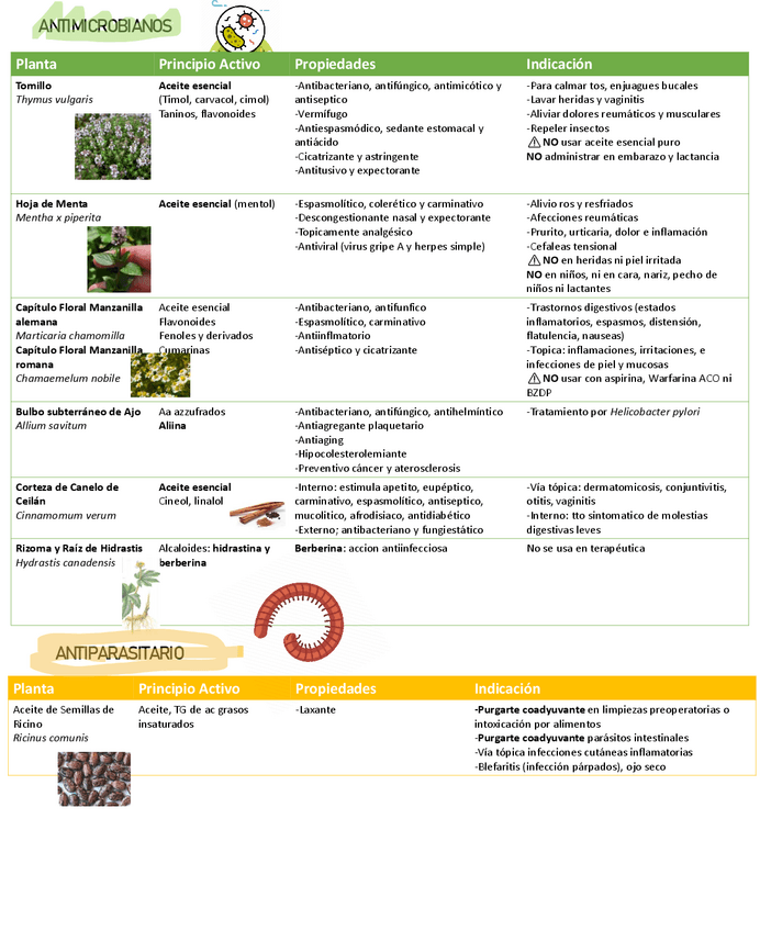 Tablas Fitoterapia 1º Parcial