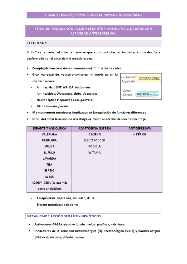 Tablas de todo el apartado de Fitoterapia