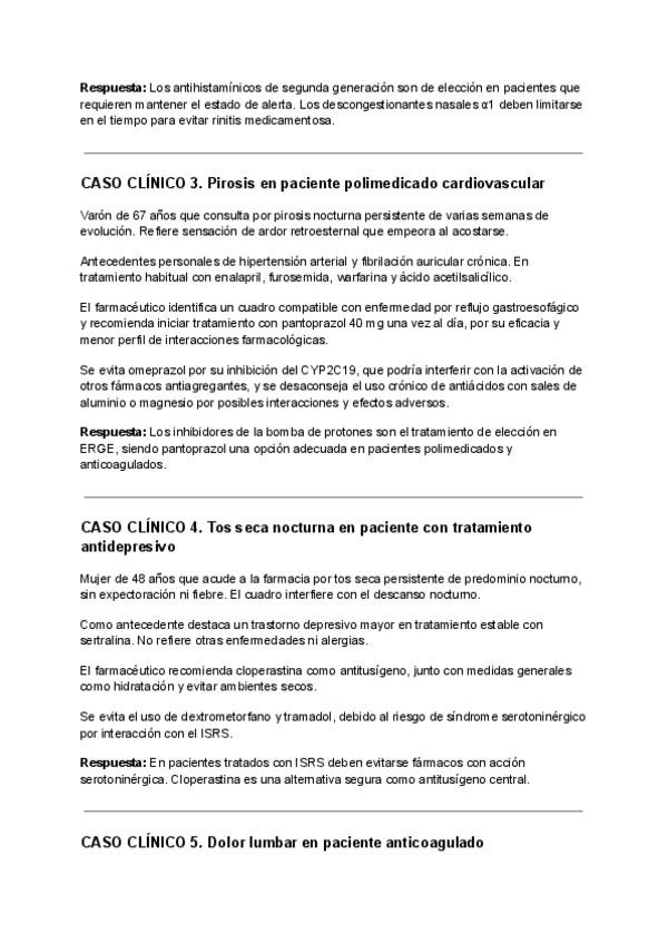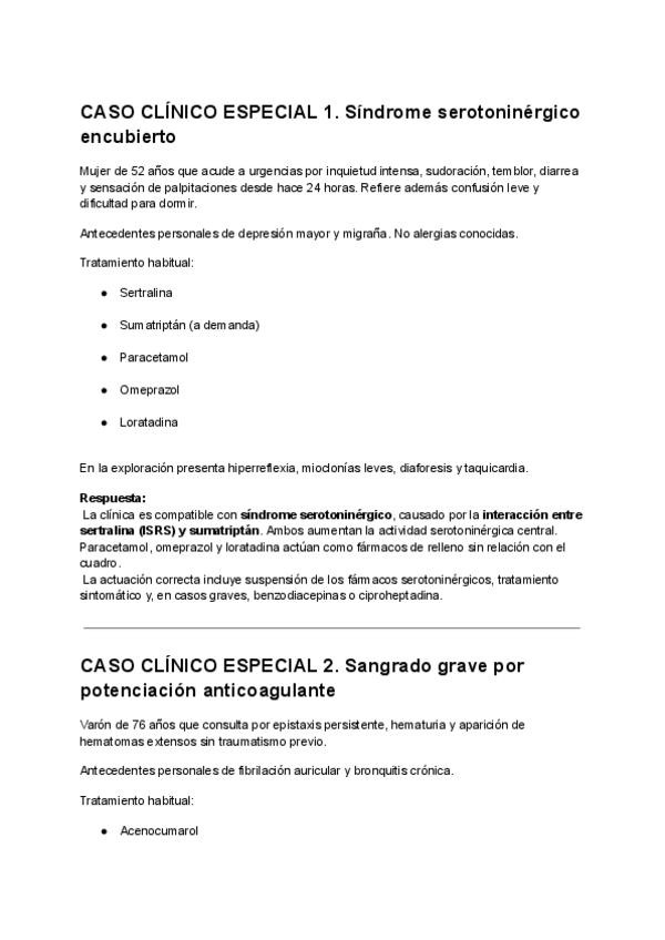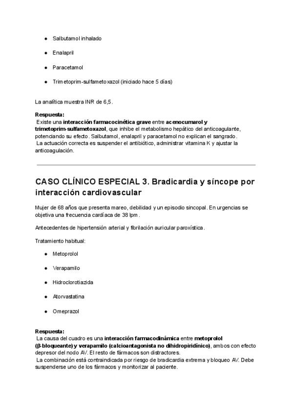 Casos clínicos resueltos donde ha de indicarse que medicamentos están produciendo una interacción patológica.