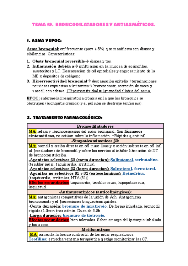 He publicado nuevos apuntes de 2º Farmacología Clínica: respi