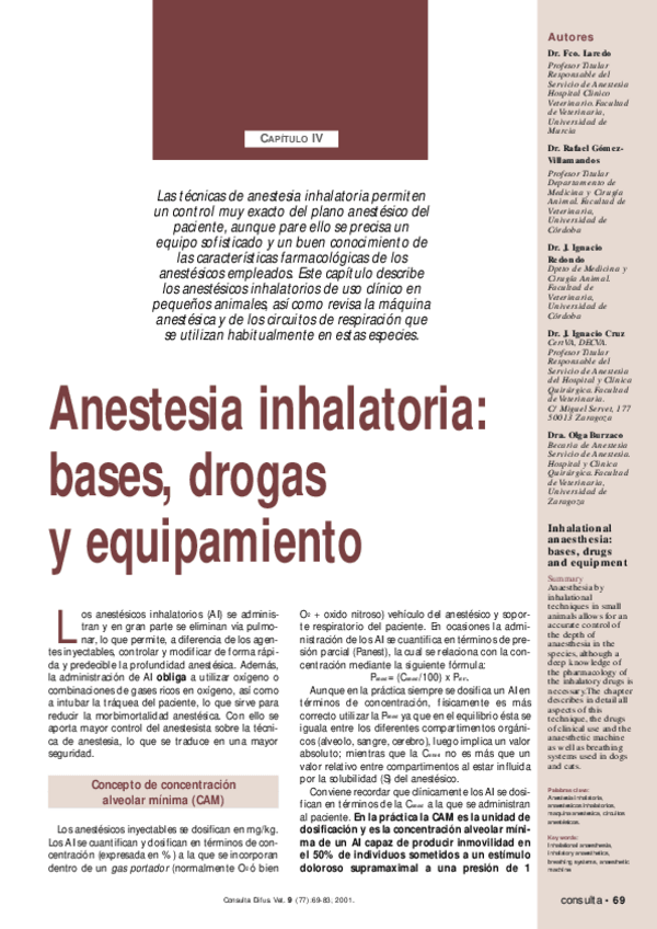 He publicado nuevos apuntes de 4º Farmacología Especial y Toxicología Veterinaria: Laredo-2001-Anestesia-inhalatoria-vet-bases-drogas-y-equipamiento.pdf