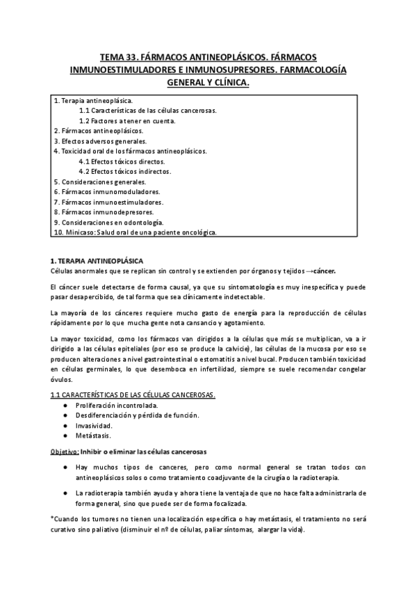 He publicado nuevos apuntes de 3º Farmacología General y Clínica: TEMA-33-Farmacos-antineoplasicos.-Farmacos-inmunoestimuladores-e-inmunosupresores.docx.pdf