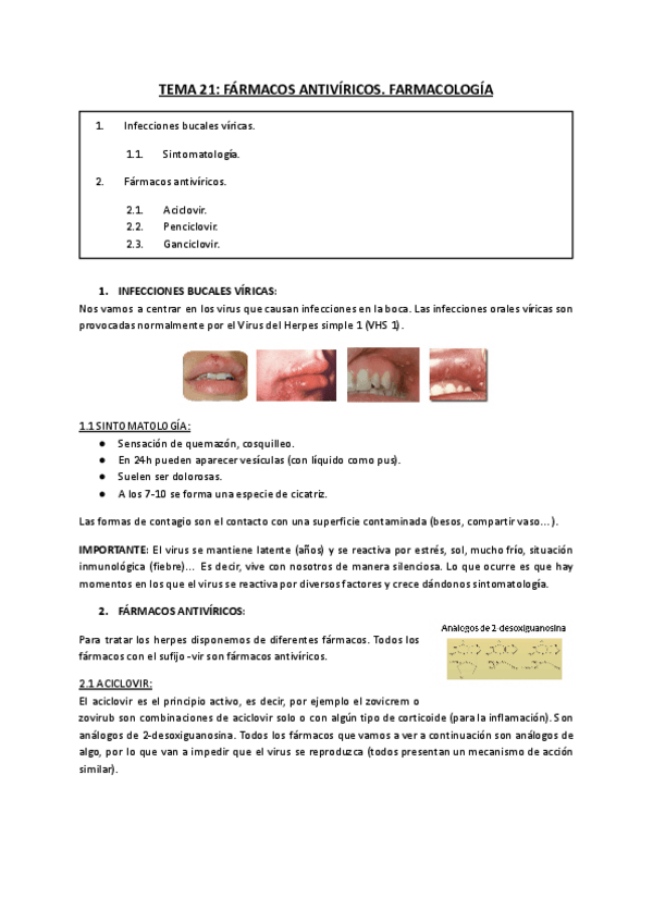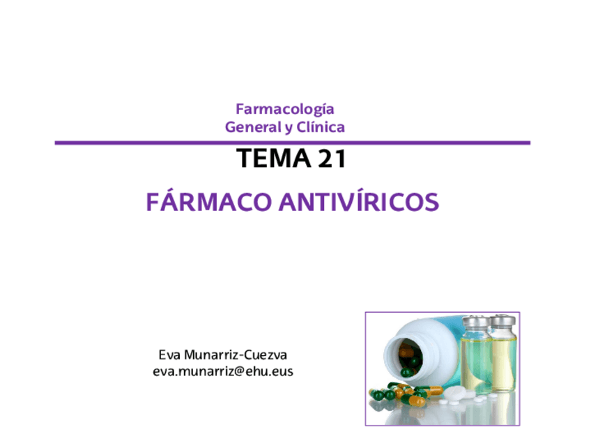 He publicado nuevos apuntes de 3º Farmacología General y Clínica: TEMA-21-FARMACOS-ANTIVIRICOS.pdf