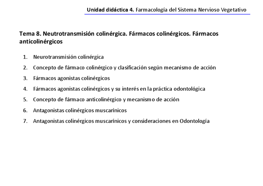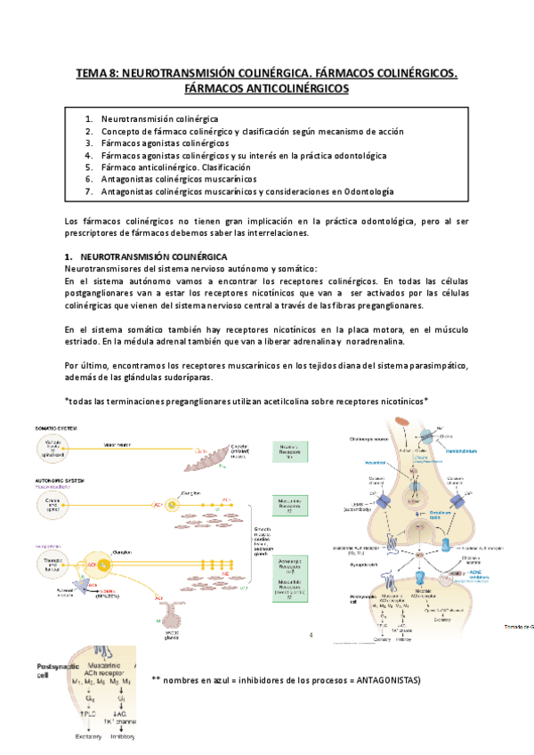 He publicado nuevos apuntes de 3º Farmacología General y Clínica: Tema-8-Neurotransmision-colinergica.-Farmacos-colinergicos.-Farmacos-anticolinergicos.pdf