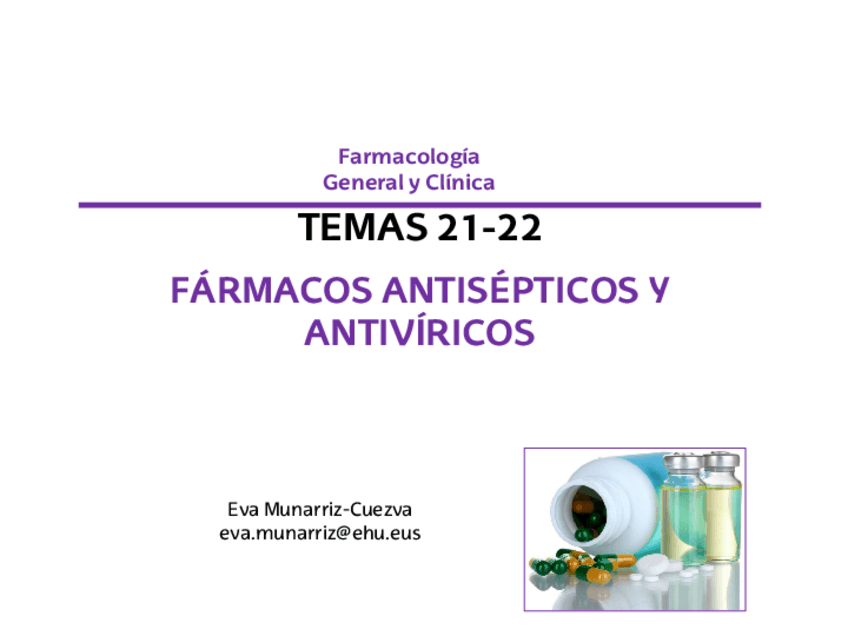 He publicado nuevos apuntes de 3º Farmacología General y Clínica: TEMA-21-22.-Farmacos-antisepticos-y-antiviricos.pdf