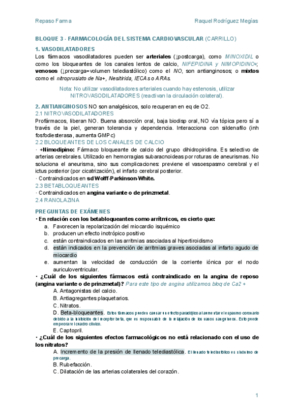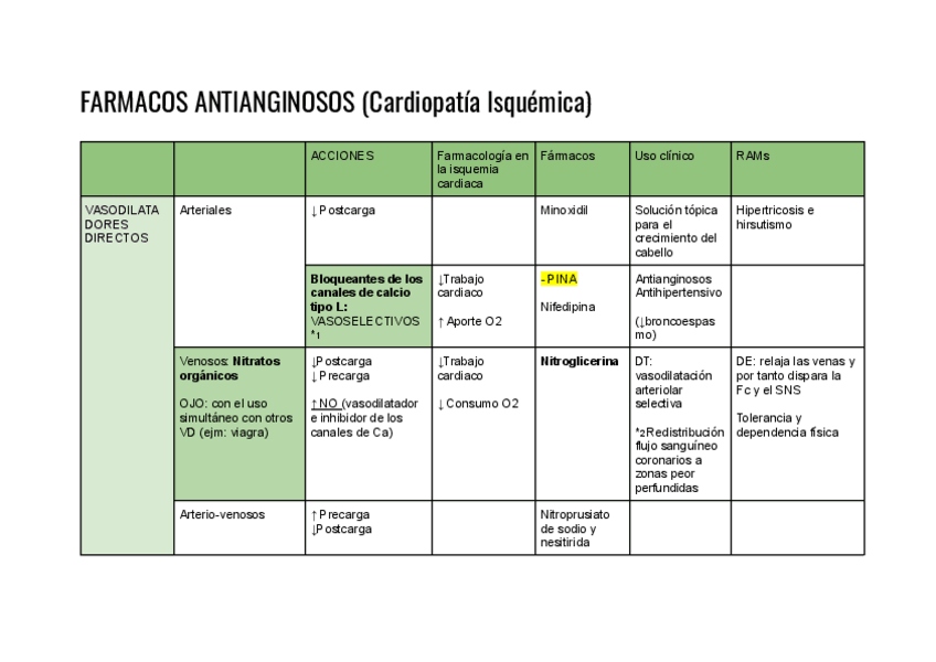 He publicado nuevos apuntes de 3º Farmacología General: Tablas resumen cardio